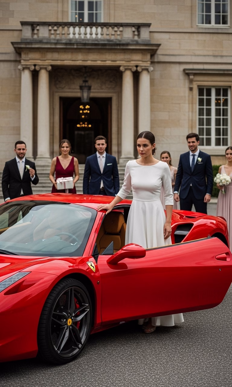 Just as the MC invited the couple to cut the cake, the roar of an engine outside drowned out the orchestra. Tires screeched. A sleek car stopped sharply at the entrance, turning every head.