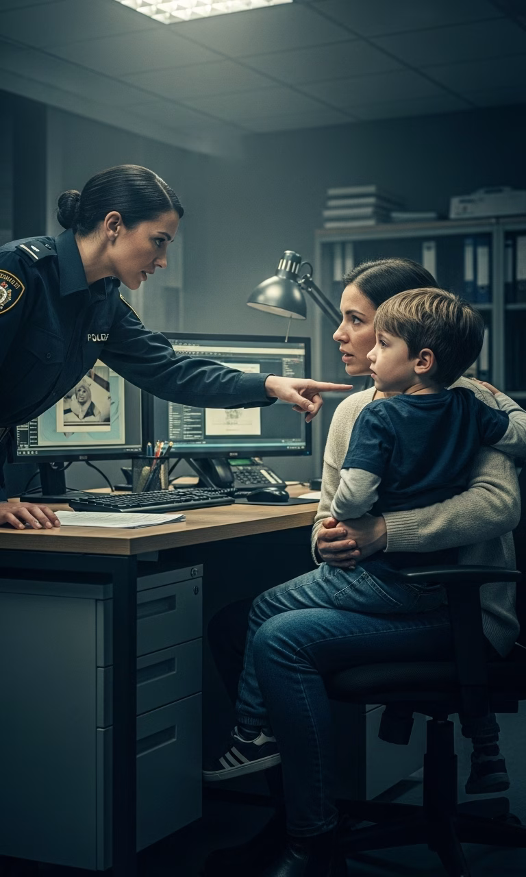 When I burst through the station doors, I saw him immediately. My little boy, swallowed by a plastic chair, wearing his dinosaur pajamas torn at the knee and smeared with dirt. His face was streaked with tears. When he saw me, he launched himself into my arms.